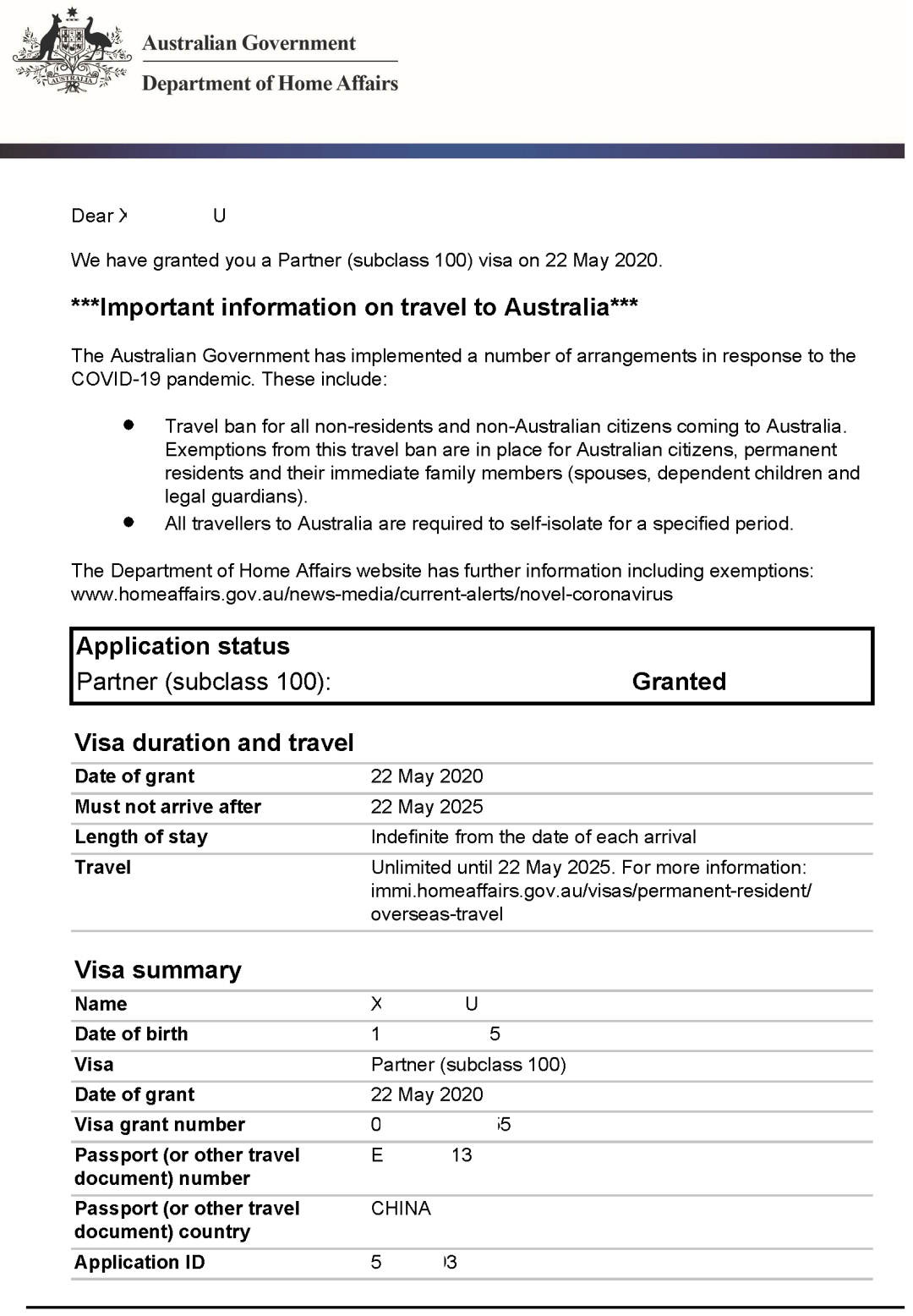 疫情挡不住“惊喜” 一日摘取“配偶临居转永居” 松柏案例专栏 即时恭贺X女士 1 个工作日获批配偶100 签证 (正常审理时间:23至27个月) 官方公布的审理时间: Share this:点击分享到Twitter(在新窗口中打开)点击分享到 Facebook (在新窗口中打开) Related Share: Related Posts 境内复杂配偶签证申请与AAT上诉 改变命运的移民上诉(AAT) 疫情挡不住“惊喜”, “黑民”10岁子女入籍“火批”