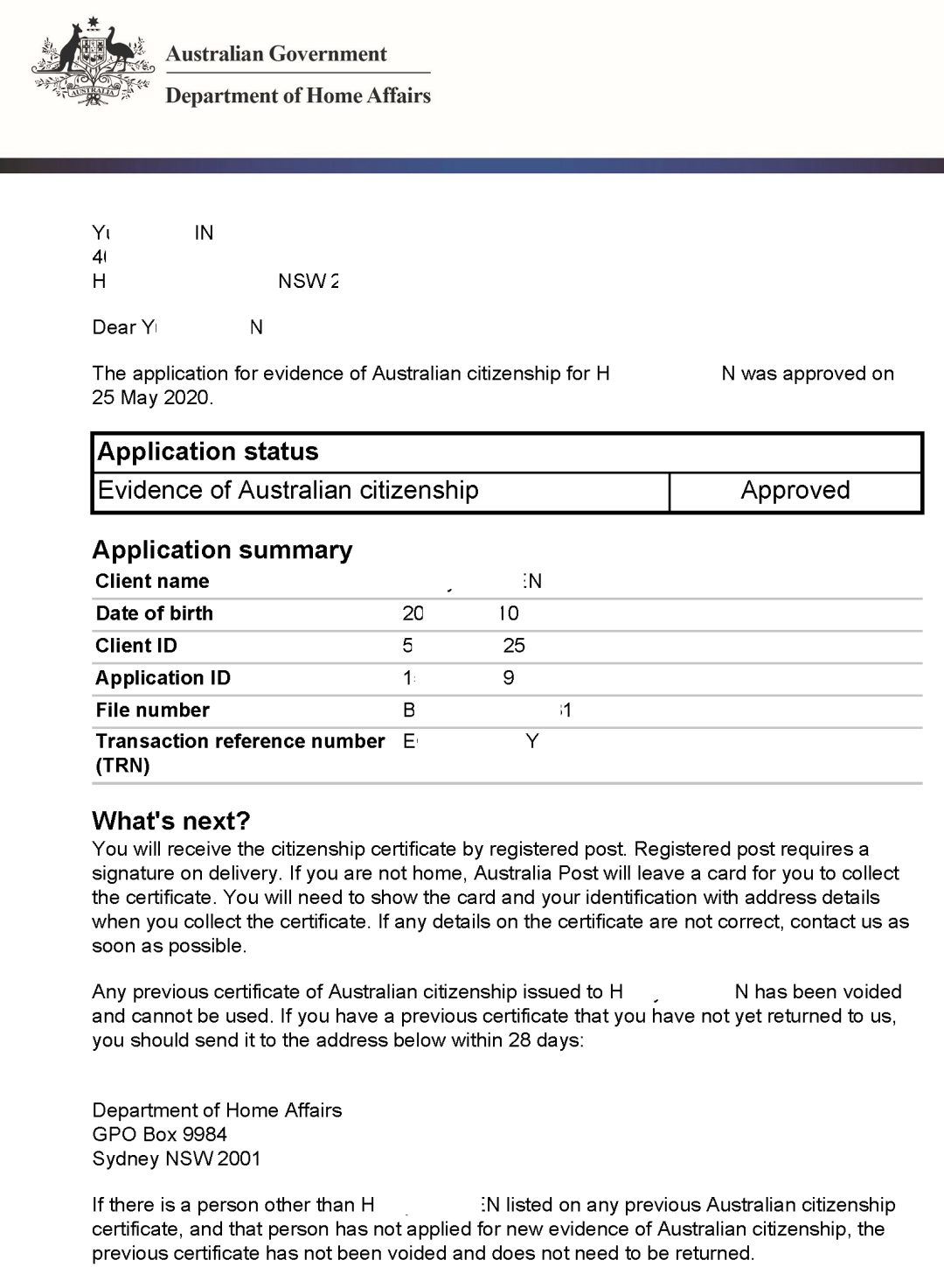 · 恭喜S 小朋友 1.5 个工作日获批澳洲公民